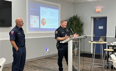 Attendees visiting with each other and the presenting members from fire and police.