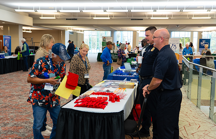Attendees visiting with each other and the presenting members from fire and police.